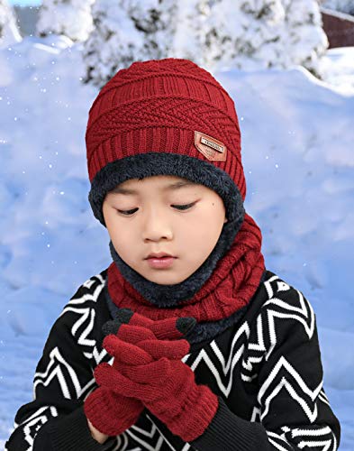 T WILKER 3 Pezzi Cappello a Cuffia Beanie Sciarpa e Guanti Touch Screen Bambini Cappello Lavorato a Maglia Sciarpa Inverno Invernali Cappelli Beanie Ragazzo Ragazza per 5-14 Anni