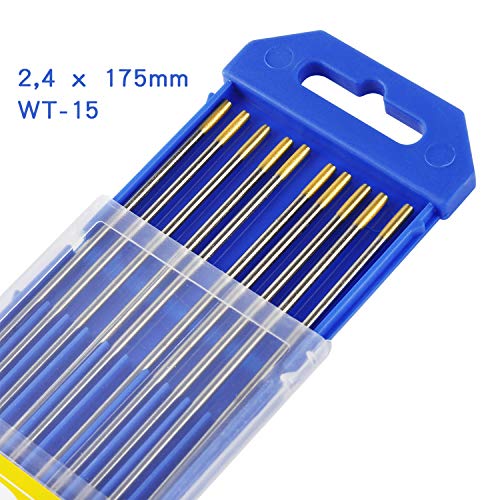 Wilktop 10 x Elettrodi di Tungsteno WL-15 Elettrodi di Saldatura 2,4Ø x 175mm Aghi di Tungsteno per Saldatura TIG (Oro)