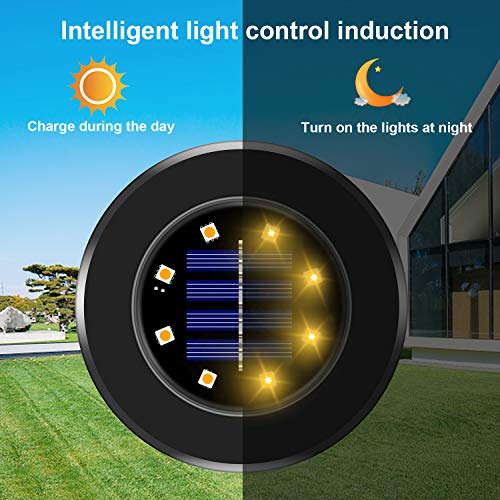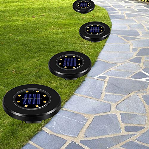 Wilktop 8 pezzi Luci Solari da Giardino Nere per Esterni Luci da Pavimento IP65 Impermeabili Luci per Esterni Bianco Caldo
