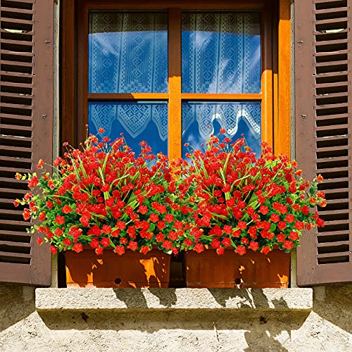 WILLBOND 12 Fiori Artificiali per Decorazioni Aperti Vegetazione Artificiale 2 Tipi di Fiori Finti Arbusti Resistenti ai Raggi UV per Esterni Piante per Finestra Fioriera Appesa (Arancione Rosso)
