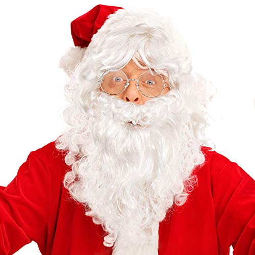 WILLBOND Parrucca Santa e Barba con Un Paio di Occhiali Parrucca Santa Realistica e Barba Set Bianco Santa Parrucca e Accessori Barba per Costume di Natale