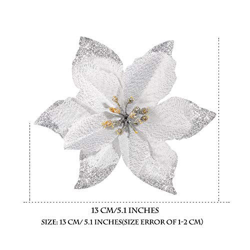 WILLBOND 30 Pezzi Glitter Ornamenti per Alberi di Natale Matrimonio Artificiale Fiori Poinsezia di Natale Fiori per Natale Fiore Alberi Ghirlande Corona Decorazione Ornamento (Argento)