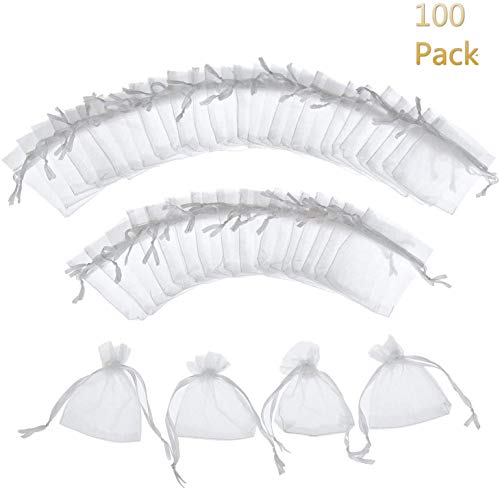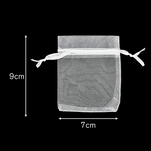 100 sacchetti in organza per gioielli, materiale: organza durevole, [7 x 9 cm, bianco].
