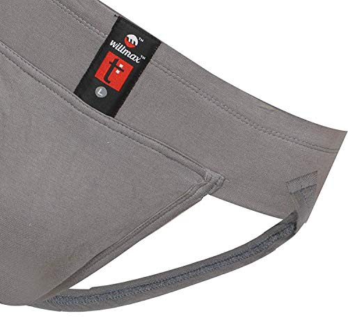 KD Willmax T-Plus Jockstrap Gym Cotton Supporter with Cup Pocket Athletic Fit Fashionable Straps Brief Multi Sport Underwear Fitness Inner Wear Soft Underpants(Grey, S)