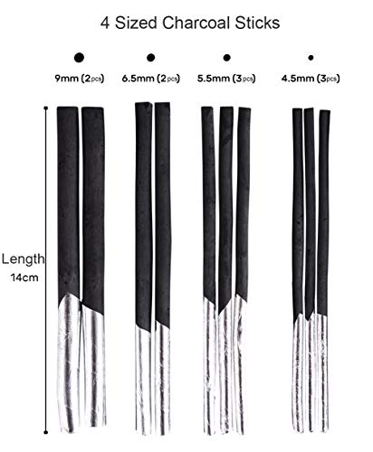 Carboni naturali ed ecologici: creati bruciando viti selezionate a mano ad alte temperature per produrre un bastoncino vellutato con un nero leggermente meno intenso rispetto al bastoncino di carbone compresso, non tossico ed è adatto per uso personale, scolastico o in studio, relativamente resistente alla rottura ed ecologico