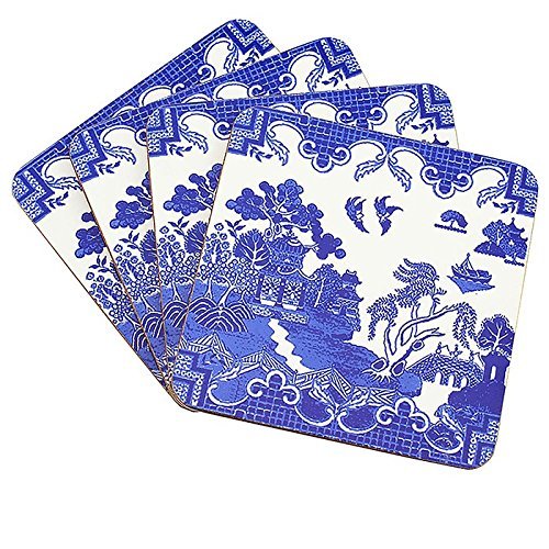 Set of 4 Drinks Coasters Wipe Clean Cork Backed - Blue Willow