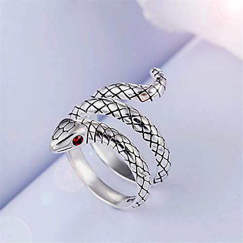 L'anello a serpente, un design antico e unico in argento sterling 925 con occhi rossi di Zikonia