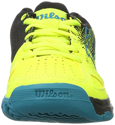 Wilson Scarpe da tennis da bambino, Ideali per giocatori che prediligono un gioco offensivo, Per ogni terreno di gioco, KAOS COMP JUNIOR, Tessuto/Sintetico, Giallo/Nero (Safety Yellow/Black/Enamel Blue), Misura: 35 1/3