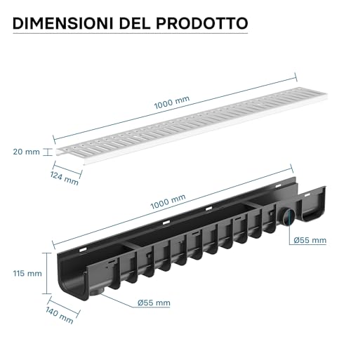 Wiltec Canale di scolo 1m con griglia per Scarico Acqua 1,5t Canaletta di drenaggio