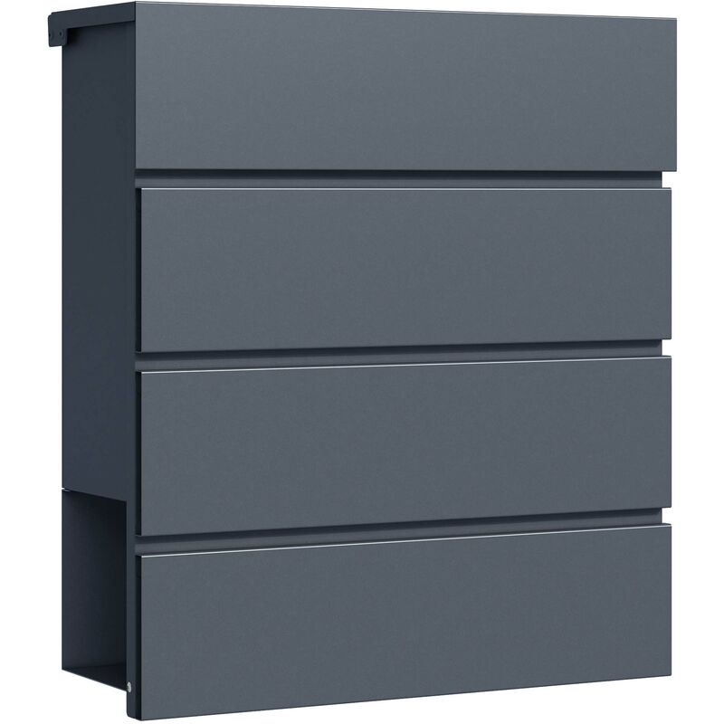 Dimensioni comode - - Cassetta da 410 x 130 x 370 mm, ideale per chi riceve quotidianamente volumi elevati di posta o chi viaggia spesso [Design Funzionale] - Scomparto a parte per giornali, riviste o volantini, per fare in modo che la posta ordinaria abbia un unico spazio a lei dedicato [Robustezza del materiale] - Acciaio zincato con verniciatura a polvere per resistere a intemperie e corrosione [Versatilità] - Progettata per adattarsi a qualsiasi contesto urbano, dagli edifici residenziali a quelli commerciali [Installazione flessibile] - Montaggio semplice a parete o al cancello utilizzando i fori predefiniti La cassetta per la posta V62 di Toboli valorizza l'aspetto degli ambienti esterni. La parte frontale è composta da quattro elementi color antracite, che conferiscono all'intera struttura un design semplice e moderno. La cassetta per le lettere si monta a parete e rappresenta un complemento decorativo nel contesto abitativo. La cassetta postale ha dimensioni esterne di 370 x