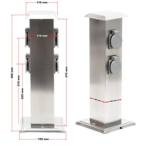 Wiltec Colonna multipresa da Giardino con 4 Prese Acciaio Palo Presa Multipla Esterno