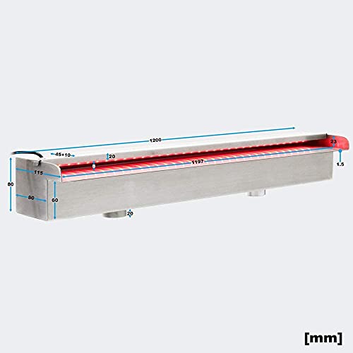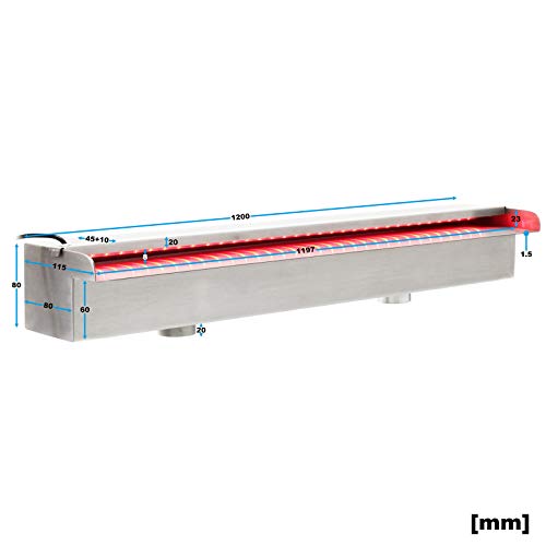 Wiltec Gioco d'Acqua a Cascata Acciaio Inossidabile con LED 120 cm Piscina laghetto