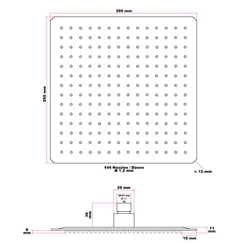 Il soffione doccia ha un totale di 144 ugelli con un diametro di 1,2 mm