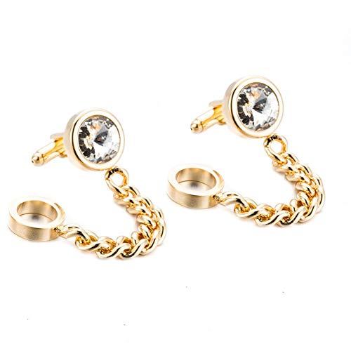 Wimagic - 1 Paio di Gemelli per Camicia, Gemelli, collane a Maniche tonde, in Cristallo, Catena in Oro