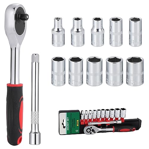 WiMas 12PCS Set di bussole metriche Set di chiavi a cricchetto da 1/4 di pollice con barra di prolunga e 10pcs set corto 4-13 mm per l'installazione domestica auto meccanica