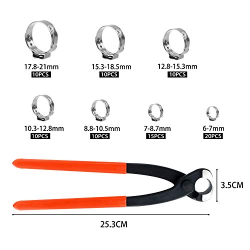 WiMas 85PCS 304 Acciaio Inossidabile 6-21mm Fascette Stringitubo per Orecchio Singolo, Pinza per Fascette Set, Morsetto A Crimpare con Pinze A Morsetto
