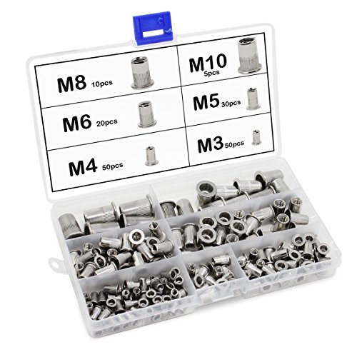 WiMas Rivetto a testa piatta in acciaio inox Rivetto filettato Rivestimento Nutsert Assortimento M3 M4 M5 M6 M8 M10 165PCS