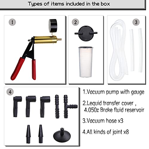 WiMas Kit di spurgo Freni Manuale Spurgo Freni a Vuoto, Kit di Prova di Pressione Strumento di spurgo del Liquido dei Freni con adattatori per Moto Veicolo autocarro