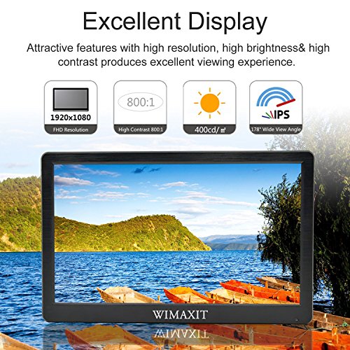 Wimaxit - Monitor portatile da 12”, HD 1920 x 1080 IPS LCD HDMI, Input audio video e camera, DVD, sistema di sicurezza CCTV, DVR, registratore con cavo HDMI