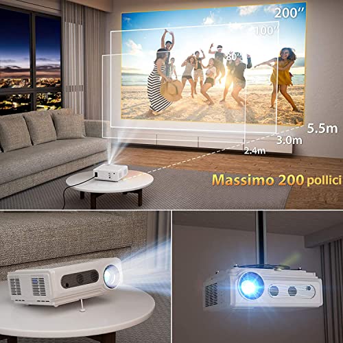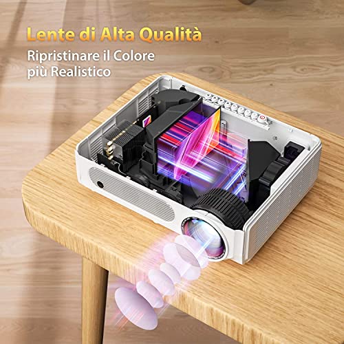 WiMiUS Proiettore WiFi Bluetooth 1080P Nativo, Videoproiettore 8500 Lumen, Supporta 4K Full HD Funzione Zoom, Proiettore LCD per Home Cinema, Compatibile con Smartphone/TV Stick/PS4/PC