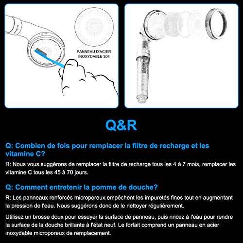 Materiali reali e design unico: respingere il filtro di cotone unico tradizionale in PP, combina diversi materiali filtranti più efficaci, con un rapporto perfetto. Vitamina C, KDF 55, cotone PP, palline di solfite di calcio, tormalina ionica, palline di ceramica, zeolite. Migliora l'attività dell'acqua e aumenta la circolazione sanguigna filtrando.