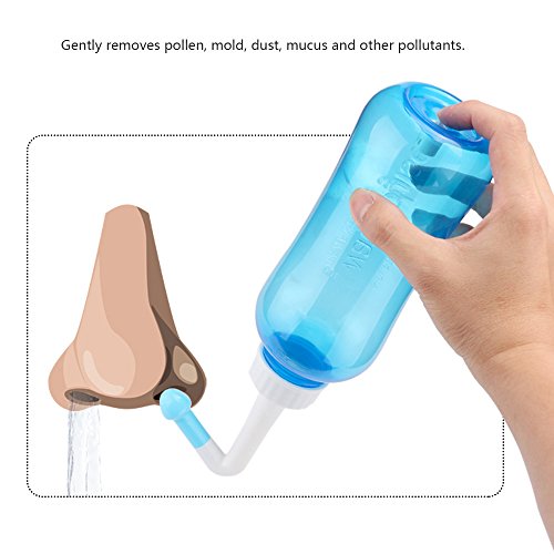 Winbang Detergente nasale, 300 ml/500 ml (opzionale) Bottiglia di lavaggio del naso Risciacquo pulito Neti Pot Cleanser Irrigazione Strumento di lavaggio del naso Misura universale 300 ML (blu)