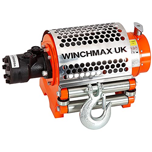 Winchmax 20000 lb / 9072 kg Verricello Idraulico 24 V. Fune in Acciaio 25 m x 14 mm. Gancio a Forcella da 1/2 Pollice. Telecomandi Senza Fili gemellati. Sistema di Controllo Completo.