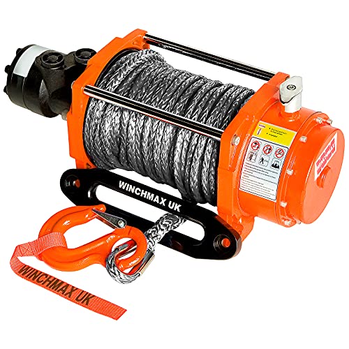 Winchmax 20000 lb / 9072 kg Verricello Idraulico Originale Arancione. Corda Dyneema da 25 m x 13 mm. Passacavo e Gancio da Competizione.