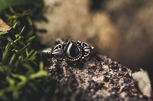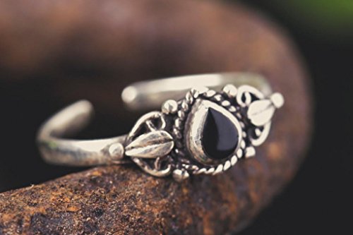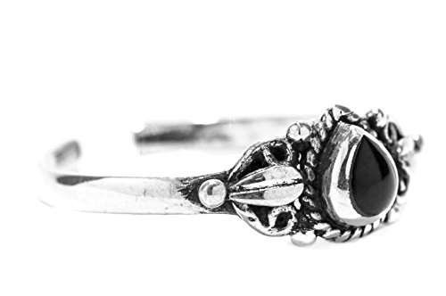 Windalf - Anello per dita dei piedi MEDY in stile vintage, altezza 0,6 cm, in argento sterling 925 con pietra di onice nera