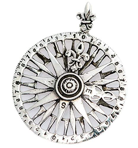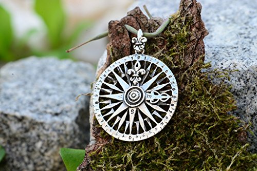 Meraviglioso ciondolo medievale con bussola, in vero argento Sterling 925