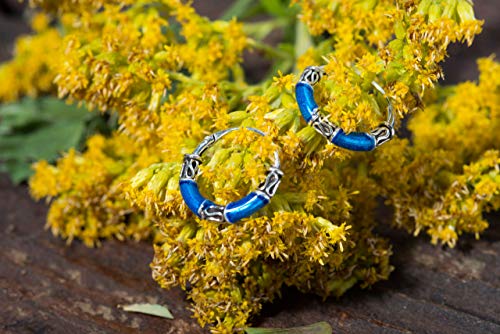 Windalf Nanika - Orecchini a cerchio in stile vintage/vichingo, argento Sterling 925, diametro 1,1 cm, con decorazioni boho, colore blu oceano