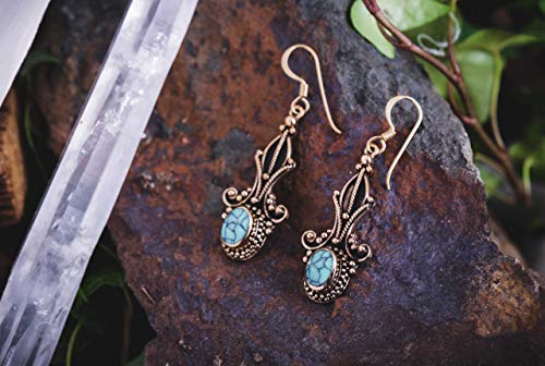 Windalf - Orecchini pendenti Amaris, 4,7 cm, turchese, in bronzo