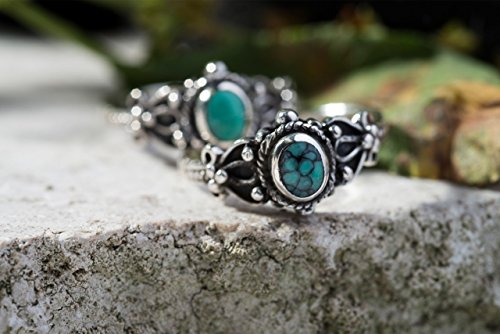 Elegante e raffinato anello in argento con pietra turchese, in stile antico.