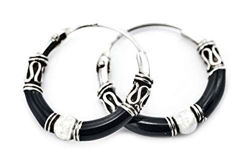WINDALF Vintage Viking Orecchini a cerchio ASGARD Ø 1,5 cm nero con sfera boho gotica orecchini in argento Sterling 925 anticato.