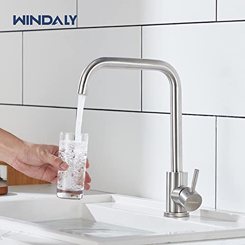 WINDALY Rubinetto Cucina, Rubinetto Monocomando per Cucina, Rubinetto da Cucina con Girevole a 360° Rubinetto Lavello Cucina, Miscelatore Cucina Acciaio Inox Spazzolat