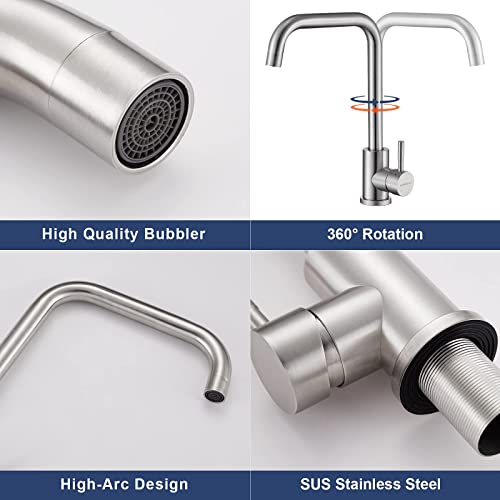 【Costruzione in Acciaio Inossidabile SUS】: IL corpo e la maniglia del rubinetto della cucina sono realizzati in acciaio inossidabile SUS 304 Materiale, resistente e robusto alla corrosione e alla ruggine