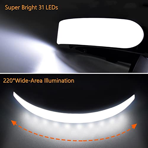 【Illuminazione ad Ampia Area di 220 °】 La torcia frontale a LED utilizza 31 LED ad alta luminosità, la luminosità massima fino a 8000 lumen. L'illuminazione a 220° elimina la necessità di muovere la testa per illuminare l'area desiderata.
