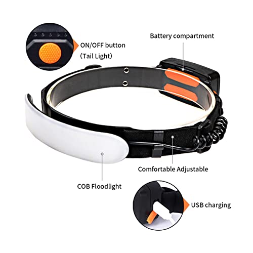 WINDFIRE Lampada Frontale LED Ricaricabile USB, 8000 Lumen Torcia Frontale COB a Fascio Largo Super Luminoso a 220 °, 3 Modalità Lampada Frontale impermeabile per Campeggio, Pesca, Corsa