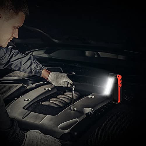【Gancio versatile e base magnetica】 Un gancio nella parte superiore di questa luce da lavoro a LED consente un facile fissaggio a rami, pareti e luoghi più alti. Con la forte base magnetica, la luce da lavoro può essere fissata alla carrozzeria dell'auto e ad altre superfici metalliche. Ideale come luce da lavoro COB e luce di ispezione nei luoghi di lavoro o come lanterna da esterno per il campeggio, il ciclismo, la riparazione dell'auto e le emergenze.