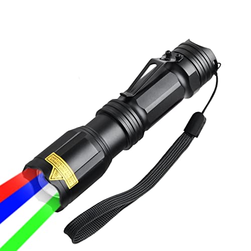 WINDFIRE Lampada Tascabile Tattica LED con Rosso Verde Blu Bianco 4 Colori in 1 Torcia Zoomabile Multifunzione Impermeabile per Visione Notturna, Pesca, Campeggio, Caccia