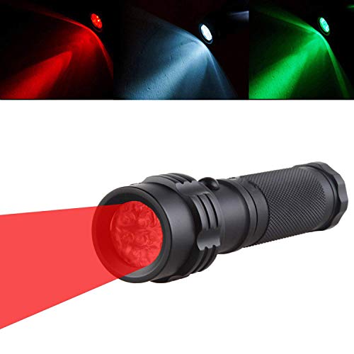 Lumière rouge verte blanche - 3 modes Facile à commuter avec une seule touche Lampe de poche DEL Lampe de poche rouge / verte / blanche La torche est couramment utilisée pour l'observation des étoiles, la chasse avec une lunette de vision nocturne ou les opérations militaires, pour l'envoi de signaux et pour demander de l'aide.