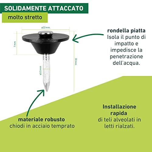 Windhager Chiodi di tenuta per nodi - 100 chiodi di montaggio 3,5 x 30 mm, disco di tenuta: 22 mm, bottoni di montaggio con chiodo per drenaggio edilizia 89145