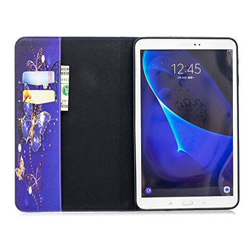 WindTeco Cover Galaxy Tab A 10.1 SM-T580/T585, Flip Custodia Protettiva Antiurto Protezione Case con Auto Sveglia/Sonno e Tasca per Le Schede per Samsung Galaxy Tab A6 10.1" Tablet, Farfalla