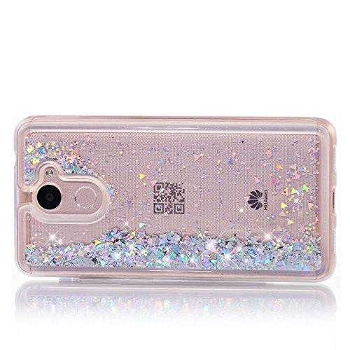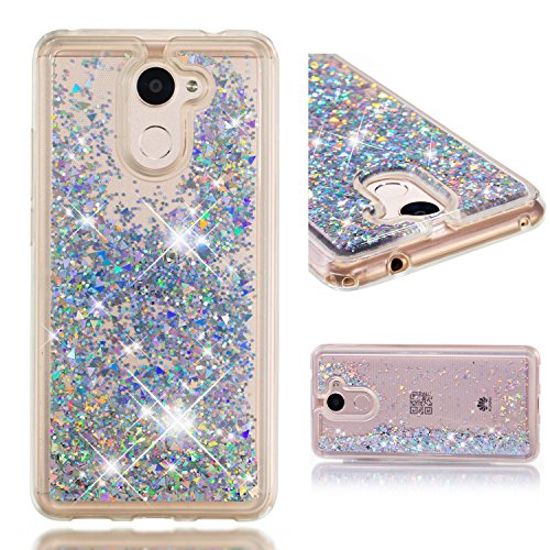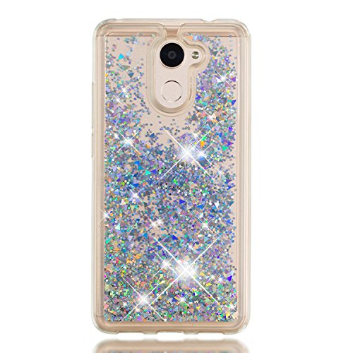 WindTeco Cover Huawei Y7 2017 / Y7 Prime Liquido Quicksand Silicone Custodia Brillantini, Bling Glitter Trasparente Copertura Anti-Scratch Shell Anti-Graffio Protettiva Case, Argento