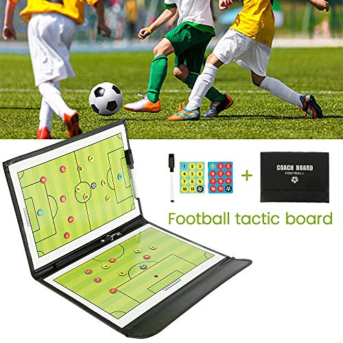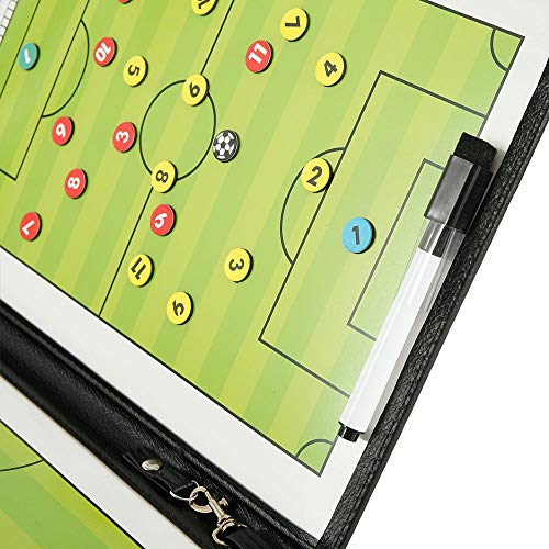 【Disegno Unico】:Con la dimensione piegata 31.4x23 cm e la corda in pu, la lavagna per calcio è portatile. Ci sono 2 tipi per il campo di calcio per aiutare a spiegare la situazione generale o la situazione particolare.