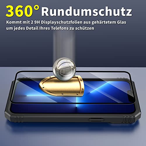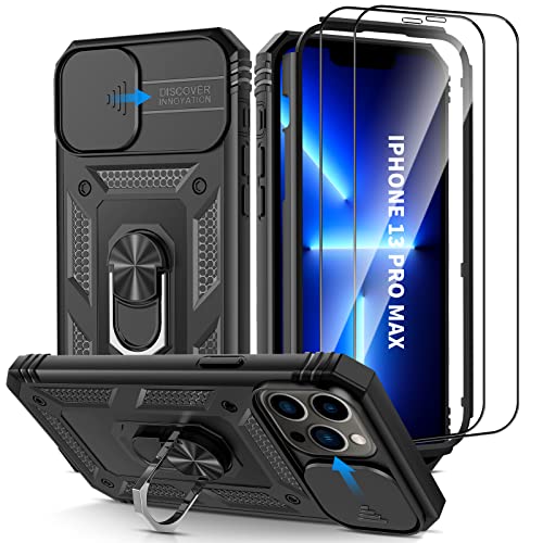 Winearth Custodia per iPhone 13 Pro Max Cover con 2pellicole protettive vetro temperato Magnetica Anello Supporto & Copertura della fotocamera Grado Militare Antiurto Durevole Protezione uomo6,7''Nero