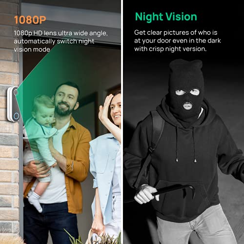 [FHD 1080P Visione Notturna] La videocitofono wifi FHD 1080p garantisce un'immagine super nitida. L'angolo di visione più ampio di 140 ° ti offre una visione più completa di ciò che accade fuori dalla tua porta. Monitora la tua casa a infrarossi e live view, può essere utilizzata sia di giorno che di notte
