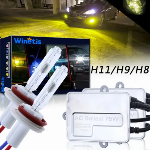 75W Winetis H11 Hid Headlight 3000K Low Beam Bulbs Conversion Kit 2Pcs Amber