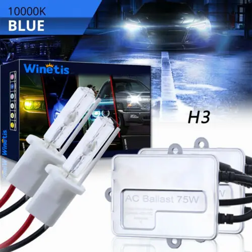 75W Winetis H3 Hid Fog Light Bulbs Conversion Kit Blue 10000K Super Bright 2Pc