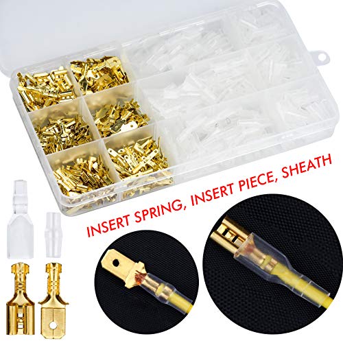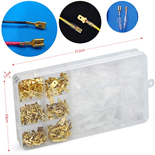 Winfred 480 Pezzi 2.8mm 4.8mm 6.3mm Terminali a Crimpare Kit per Connettore Cavo, Maschio e Femmina Capicorda Elettrici Connettori Proiettile in Ottone con Coperchio Isolante
